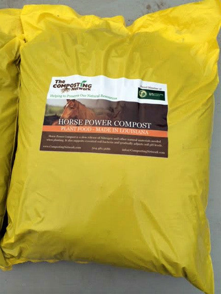 Horse Power Compost is a plant food made locally here in Louisiana. Horse Power Compost is a slow release of Nitrogen and other natural materials needed when planting. It also supports essential soil bacteria and gradually adjusts soil pH levels.